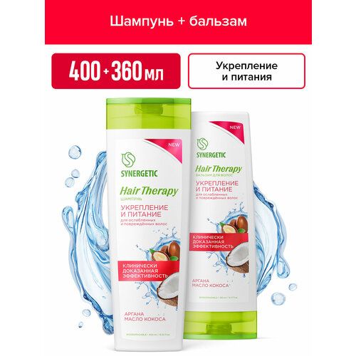 НАЙТИ ВЫГОДНЕЕ - Спайка SYNERGETIC Шампунь + Бальзам для волос HAIR THERAPY (Укрепление и питание )