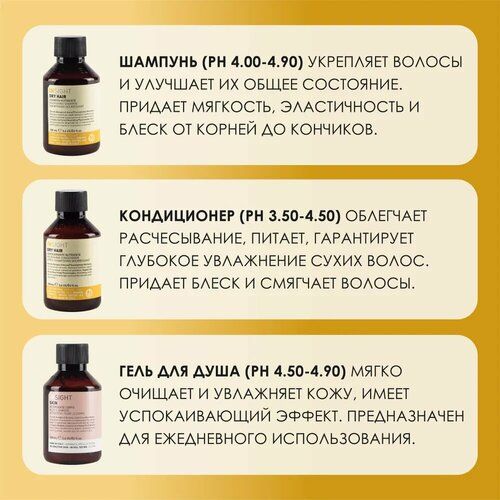 Набор Insight Professional TRAVEL BOX DRY HAIR с экстрактом овса - это дорожный косметический набор, состоящий из шампуня (100 мл) кондиционера для волос (100 мл) и геля для тела (100 мл). Он предназначен для ухода за волосами и телом в дорожных условиях, обеспечивая глубокое восстановление и укрепление волос, а также деликатное очищение тела.