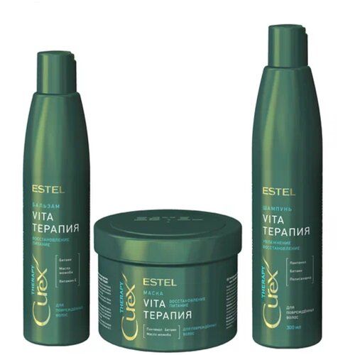 Шампунь "Vita-терапия" для повреждённых волос CUREX THERAPY (300 мл) Мягко очищает сухие и ослабленные волосы, питает их, делая более крепкими и здоровыми. Содержит пантенол и натуральный увлажняющий компонент бетаин, которые ухаживают за волосами и кожей головы и предохраняют их от потери влаги. Результат:- Мягкое очищение- Увлажнение и питание- Шелковистость и блеск волос. Бальзам "Vita-терапия" для повреждённых волос CUREX THERAPY (250 мл) Содержит витамин Е, восстанавливающий и укрепляющий структуру волос. Обладает прекрасным кондиционирующим эффектом. Натуральные компоненты бетаин и масло жожоба увлажняют волосы и способствуют сохранению гидробаланса. Результат:- Восстановление повреждённой структуры волос - Увлажнение и питание- Лёгкость расчёсывания. Маска "Vita-терапия" для повреждённых волос CUREX THERAPY (500 мл) Интенсивно питает сухие, поврежденные волосы. Входящие в состав натуральные компоненты бетаин и масло жожоба увлажняют волосы и способствуют сохранению влаги. Пантенол и витамин Е восстанавливают поврежденную структуру волос, делая их здоровыми и красивыми. Результат: Увлажнение и питание. Восстановление структуры волос. Эластичность и блеск волос. Применение: нанести маску на чистые влажные волосы, равномерно распределить по всей длине, не затрагивая корни волос. Время воздействия 5-10 минут. Затем смойте водой.