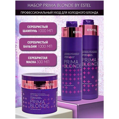 НАЙТИ ВЫГОДНЕЕ - Набор PRIMA BLONDE для холодных оттенков блонд by ESTEL: Шампунь 1000 мл, бальзам 1000 мл, маска для волос 300 мл