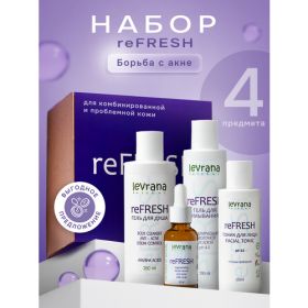 НАЙТИ ВЫГОДНЕЕ - Levrana Набор уходовой косметики ReFresh, подарочный набор для женщин гель для умывания, тоник для лица, регенерирующая сыворотка , гель для душа