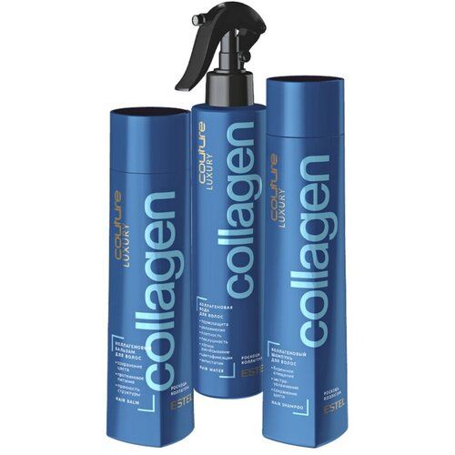 Состав набора: Коллагеновый шампунь для волос LUXURY COLLAGEN ESTEL HAUTE COUTURE (300 мл). Бережно очищает кожу головы и волосы, способствуя сохранению яркости цвета. Первично насыщает структуру волос натуральным коллагеном, глубоко восстанавливает, увлажняет и пролонгировано удерживает влагу. Коллагеновый бальзам для волос LUXURY COLLAGEN ESTEL HAUTE COUTURE (250мл). Активно насыщает волосы коллагеном, восстанавливает структуру изнутри и создаёт воздухопроницаемый защитный экран на поверхности волоса, не допуская потери влаги. Поддерживает природную эластичность волос. Коллагеновая вода LUXURY COUTURE LUXURY COLLAGEN (300 мл) для укладки волос придаст волосам головокружительную динамику и превосходную послушность, обеспечит лёгкое расчёсывание, антистатический эффект, надёжную термо- и цветозащиту. Для дополнительного wow-эффекта во время укладки.