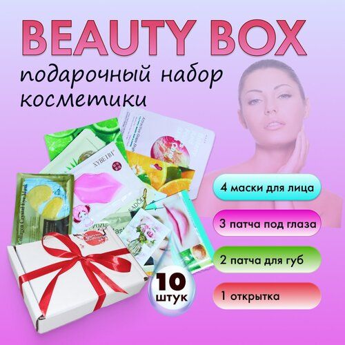 Бьюти бокс Sakura Prestige. В бьютибокс входят лучшие средства внутри которого вы найдете все необходимое для полноценного и ежедневного ухода за кожей. Каждый продукт в этом наборе разработан с использованием передовых технологий и клинически доказан для достижения видимых результатов. Корейская косметика считается ведущей и признана по всему миру благодаря своим инновационным формулам и эффективности. Он идеально подходит для использования во время ухода за кожей. Потрясающий набор тканевых масок для лица с ингредиентами высокого качества. Они пропитаны средством, которое позволяет активным компонентам глубоко проникать в кожу, доставляя максимальную пользу и эффективность. Маски освежают и увлажняет кожу, они богаты антиоксидантами, которые защищают кожу от свободных радикалов, способствуя ее омоложению и сиянию. Также маски борются с признаками старения кожи и обладают увлажняющими и питательными свойствами. Корейские патчи в форме губ заживляющие трещинки кожи губ, увлажнят, напитают и разгладят небольшие морщинки. Гидрогелевые патчи для глаз против отечности и усталости. Патчи для глаз снимут усталость и следы недосыпа. И завершает чудесный подарок девушке, любимой, коллеге мини открытка для написания личных пожеланий, благодарностей. Каждый товар в наших наборах прошел все необходимые исследования и сертификации, поэтому полностью безопасен для использования. Тканевые маски для лица подходят для любого типа кожи, повышают упругость и разглаживает мелкие морщинки, а также питают и увлажняют кожу, оказывают регенерирующее воздействие, улучшают эластичность кожи, снимают следы усталости и стресса. За 5 минут маска интенсивно увлажнит и разгладит кожу, блокируя потерю влаги, а экстракты фруктов, ягод и растений в составе простимулируют естественную выработку гиалуроновой кислоты для формирования четкости овала лица, тонуса и упругости кожи. Все позиции в нашем подарочном наборе подобраны с учетом потребностей для ухода за своей внешностью, чтобы вы оставались всегда свежи, красивы и счастливы. Ежедневный уход помогает избавиться от кожных проблем, от прыщей, черных точек. Такой косметический набор будет отличным подарком для любой женщины или девушки: мамы, сестры, коллеги или подруги, сюрприз бокс подарит ей волшебные минутки бьюти-процедур наедине с собой. Вся уходовая косметика для лица упакована в стильную белую крафтовую коробку с изящной атласной ленточкой. Такой подарочный набор станет замечательным презентом для мамы, сестры, девушки, коллеги и вашей жены. А также идеально подходит для Дня Влюбленных или 8 марта. Позвольте себе испытать моменты роскоши и заботы, которые вы заслуживаете. Весь набор составлен с учетом потребностей современных женщин, каждый продукт пользуется большим спросом и дает видимый результат. Регулярное использование уходовой косметики поможет вам достичь заметных результатов, сделать вашу кожу сияющей, ухоженной и здоровой. Позвольте себе насладиться ежедневной процедурой заботы и ваша кожа будет благодарна вам за это. Наша косметика не вызывает аллергических реакций и подходит для всех типов кожи. Закажите наш эксклюзивный набор косметики для ухода сегодня и подарите вашей коже заботу, а вашим близким - незабываемый подарок, который они точно оценят и полюбят. Приобре