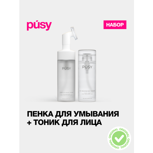 НАЙТИ ВЫГОДНЕЕ - PUSY Набор Пенка для умывания с массажной щеточкой и тоник для лица увлажняющий