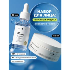 Миксит Подарочный увлажняющий набор с пантенолом и гиалуроновой кислотой для профессионального ухода за кожей лица WOW Moisture. В уходовый комплекс входит успокаивающий крем Cream и осветляющая сыворотка Skin Chemistry Anti Blemish Serum. Антивозрастной крем направлен на интенсивное питание, восстановление защитного барьера, осветление пигментации. Обеспечивает подтягивающий овал и разглаживающий морщины эффект. Питательный крем можно использовать как базу под макияж. Матирующий серум интенсивно борется против прыщей и черных точек. Средство ускоряет регенерацию, отбеливает тон и выравнивает рельеф. Себорегулирующая сыворотка способствует сужению расширенных пор, устранению жирного блеска и постакне. Средства из бьюти бокса с натуральным составом.