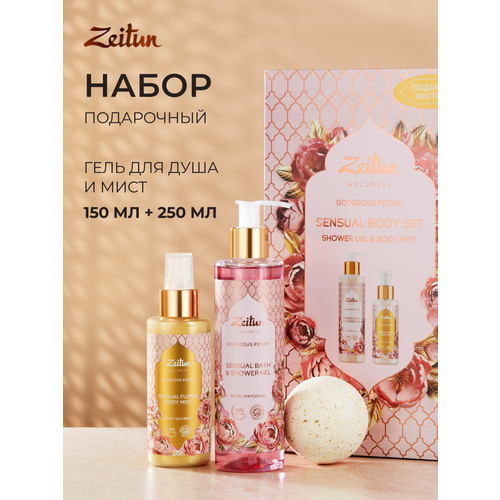 НАЙТИ ВЫГОДНЕЕ - Zeitun Подарочный набор уходовой косметики для женщин с ароматом пиона и пачули GORGEOUS PEONY: гель для душа и спрей-мист для тела
