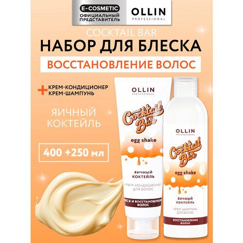 НАЙТИ ВЫГОДНЕЕ - Набор COCKTAIL BAR для восстановления волос OLLIN PROFESSIONAL яичный коктейль 400+250 мл