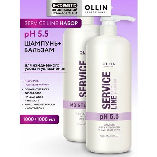 Профессиональный увлажняющий набор для ежедневного ухода SERVICE LINE шампунь и бальзам Ollin Professional для повседневного ухода сочетает эффективное очищение и мягкое увлажнение. Формула идеально сбалансирована для ежедневного применения — волосы остаются чистыми, ухоженными и послушными без утяжеления. Шампунь Оллин 1000 мл бережно очищает, не вызывая сухости и раздражения. Мягкие компоненты возвращают мягкость, блеск и свежесть. Подходит для частого применения даже при чувствительной коже головы. Бальзам 1000 мл завершает уход: насыщает влагой, облегчает расчёсывание, делает волосы гладкими и более послушными. Увлажняющий комплекс на основе растительных ингредиентов улучшает структуру и возвращает естественный блеск. Подходит для всех типов волос.