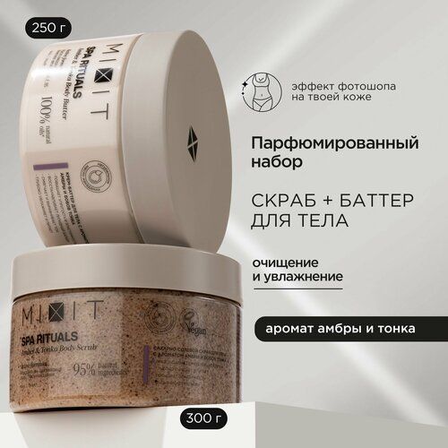 Миксит Парфюмированный набор для профессионального ухода за телом SPA RITUALS. В уходовый бокс входят отшелушивающий скраб Amber & Tonka Body Scrub и увлажняющий крем баттер для тела Amber & Tonka Body Butter.