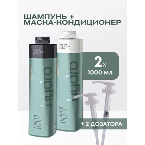 Профессиональный набор ESTEL HAUTE COUTURE HYDROBALANCE шампунь для увлажнения волос 1000 мл и маска-кондиционер 1000 мл и 2 дозатора. Подходит для всех типов, включая сухие, обезвоженные, окрашенные или склонные к ломкости. Благодаря уникальному сочетанию гиалуроновой кислоты, соевых пептидов и растительных компонентов, каждая часть комплекта работает на достижение главной цели — гармонии и здоровья.