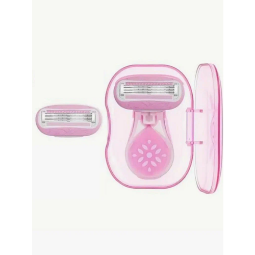Набор для безопасного и комфортного бритья интимных зон включает в себя женскую бритву с головкой из трех лезвий, а также запасную головку для бритья. Чехол в наборе поможет удобно хранить бритву и брать ее с собой в путешествие. Розовый цвет добавляет нежности и женственности этому набору.
