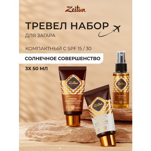 НАЙТИ ВЫГОДНЕЕ - Zeitun Дорожный набор тревел-формата Ритуал Солнца: крем после загара, крем солнцезащитный SPF30, масло для загара SPF15, мини формат, 3 шт х 50 мл