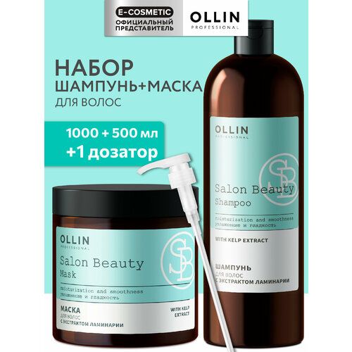 НАЙТИ ВЫГОДНЕЕ - Косметический набор SALON BEAUTY для ухода за волосами OLLIN PROFESSIONAL с экстрактом ламинарии с дозатором 1000+500 мл