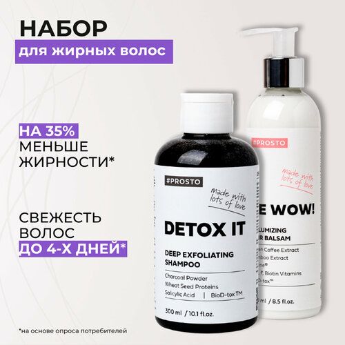 НАЙТИ ВЫГОДНЕЕ - Набор Шампунь и Бальзам-маска для жирных волос и кожи головы PROSTO COSMETICS, 300 мл+250 мл