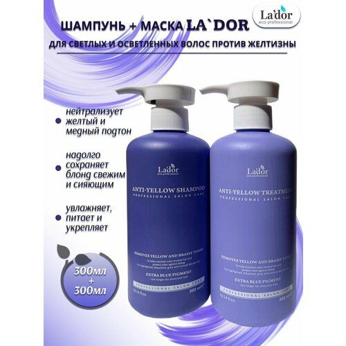 НАЙТИ ВЫГОДНЕЕ - Lador / Набор по уходу за волосами для светлых волос против желтизны Lador Anti-Yellow Shampoo & Treatment 300ml + 300ml