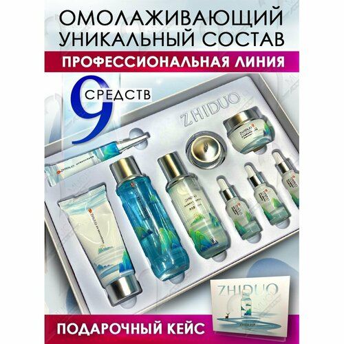 Шикарный омолаживающий набор из 9 средств с ингредиентами из Южной Кореи для ухода за лицом, зоной декольте и телом – лучшая забота за любым типом кожи раковины, водоросли, икру и прочие морепродукты, содержит: гликопротеин, углевод, кальций, фосфор, йод, железо. Набор уходовой косметики также содержит ингредиенты, импортированные из Южной Кореи. Дрожжевые полипептиды, коллаген шёлка, гилауроновая кислота, экстракт тростника Кюрасао, ниацинамид, аллантоин, экстракт алоэ вера и кокосовое масло. Эти компоненты обладают мощным косметологическим эффектом, препятствуют старению, имеют ощутимый лифтинг-эффект. Поверхность дермы разглаживается, становится эластичнее, исчезают морщины. Контуры лица вырисовываются четче. Дермальный слой получает необходимую влагу и питание. Косметические средства стимулируют кровоток, ускоряют регенерационные процессы, стимулируют коллагенообразование, тормозят выработку меланина. В результате пропадает лишняя пигментация, бледнеют веснушки. Данная линейка восстановит водный баланс, очистит и смягчит и омолодит кожу.