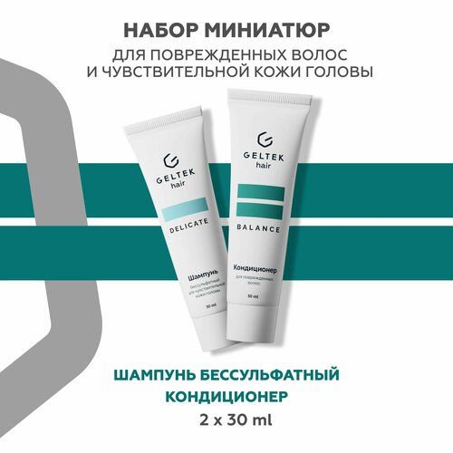 НАЙТИ ВЫГОДНЕЕ - Гельтек Набор шампунь бессульфатный для чувствительной кожи головы и бальзам для поврежденных волос, 2 шт по 30 мл