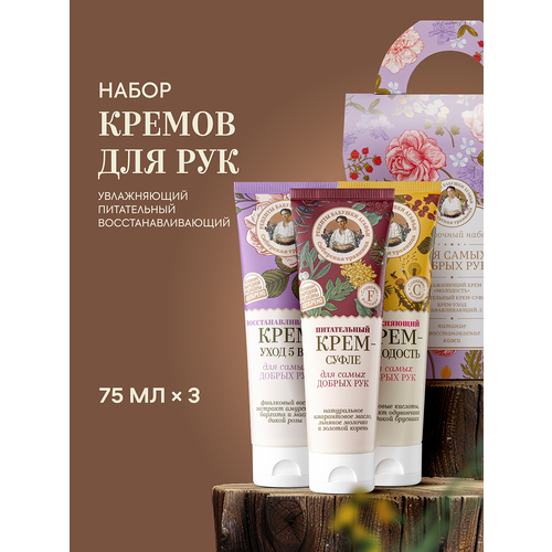 НАЙТИ ВЫГОДНЕЕ - Подарочный набор Рецепты Бабушки Агафьи Сибирская Травница, для рук, увлажняющий/питательный/восстанавливающий, 3х75мл