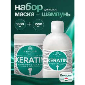 НАЙТИ ВЫГОДНЕЕ - Профессиональный набор Kallos Кератин шампунь+маска для всех типов волос