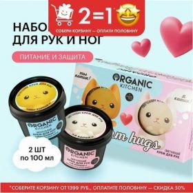 НАЙТИ ВЫГОДНЕЕ - Organic Kitchen Warm Hugs Подарочный набор для женщин: смягчающий и увлажняющий крем для рук, питательный крем для ног от сухости 2х100 мл