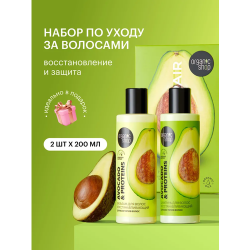 НАЙТИ ВЫГОДНЕЕ - Organic Shop Hair Repair Подарочный набор для ухода за волосами: укрепляющий питательный шампунь, бальзам кондиционер восстанавливающий с протеином 2х200 мл