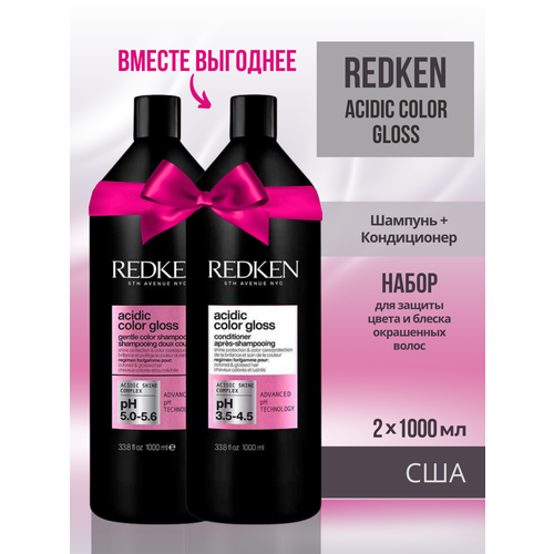 НАЙТИ ВЫГОДНЕЕ - Redken Acidic Color Gloss Set - Набор для защиты цвета и блеска окрашенных волос (шампунь 1000 мл, кондиционер 1000 мл)