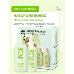 рофессиональный шампунь для жирных волос «Максимальный объем» Volume Maker shampoo ICE Professional мягко очищает кожу головы, уплотняет и приподнимает тонкие пряди от корней. Очищающее средство регулирует работу сальных желез, делает локоны послушными и плотными, придаёт мягкость и блеск. Ухаживающие компоненты себорегулирующего проф состава направлены на замедление выработки себума, уплотнение и густоту. Органический экстракт полярной березы способствует устранению избыточной жирности, продлевает свежесть и прикорневой объем. Биотин — восстанавливающий и укрепляющий витамин красоты. Работает на восстановление поврежденной пористой структуры, повышает эластичность и упругость локонов. Регулирующий и уплотняющий шампунь Айс для быстропачкающихся волос дает результат — пряди густые и крепкие как после салонной процедуры. PRO TIPS: рекомендуем перед нанесением шампуня вспенить его в ладонях для более глубокого очищения. Уходовая косметика — хорошая идея, что можно подарить женщине на любой праздник или просто так, без повода. Подарочный продукт для здоровья гладких и ухоженных волос станет приятным дополнением к подарку для нее под елку — девушке, сестре и дочке подростку в День рождения. Порадует маму, бабушку и подругу на 8 Марта и День матери. Интересный новогодний и рождественский женский презент на Новый год и Рождество коллеге. В линейках российского бренда натуральной косметики без силиконов и парабенов Натуре Сиберике есть все для ухода за собой. Eco и vegan, не тестируется на животных. Солевой текстурирующий лосьон-спрей для объема волос от Ice Professional - это идеальное средство для укладки и фиксации Вашей прически. Натуральный состав направлен на восстановление и разглаживание секущихся и ломких кончиков. Он разработан для уплотнения и укрепления тонких поврежденных волос. Это настоящие витамины для красоты локонов, которые разглаживают кутикулу и избавляют от пушистости, придавая блеск и эластичность. Полярная береза устраняет избыточную сальность и обеспечивает обьем от корней. Что отлично подойдет для жирных волос. Биотин действует на утолщение прядей, повышает их упругость. Бамбук наделяет легкостью и придает гладкость. Природные компоненты направлены на укрепление структуры, добавляя густоту вашим локонам. Красота прически имеет большое значение для женского настроения. Очень важно делать уход за волосами и выбирать подходящие укладочные средства, пудры и спреи. Наш профессиональный текстурайзер является несмываемым, что значительно сокращает время на укладку. Нанесите спрей на прикорневую зону и по всей длине на влажные или слегка подсушенные волосы. Эксперты советуют перед сном нанести средство и заплести косу для того, чтобы с утра проснуться с идеальными локонами. Такой совет сэкономит время на создание прически. Подарите себе супер объем с нашей уходовой косметикой от Натуры Сиберики. Насладитесь салонным уходом не выходя из дома.