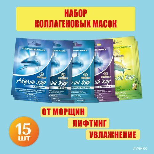 НАЙТИ ВЫГОДНЕЕ - Акулья сила. Маски для лица. Набор масок для лица Омоложение. Набор 15 шт 150г / лучикс