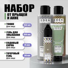 Набор от прыщей и акне EDEN Stop Acne подходит для ежедневного ухода за проблемной кожей лица и обеспечивает заметное улучшение текстуры кожи.