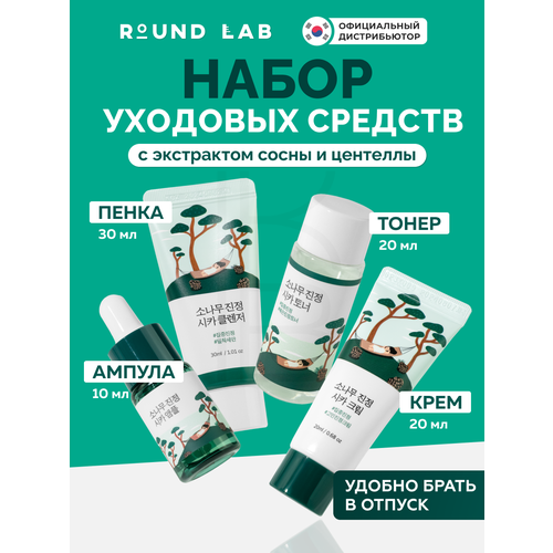 Travel-набор уходовых средств с экстрактом сосны и центеллы | Round Lab Pine Calming Cica Trial Kit 103750770283