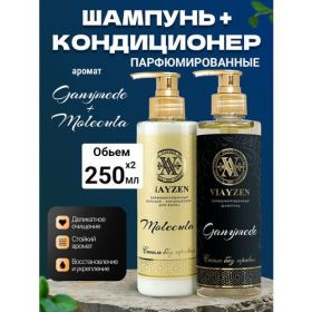 Подарочный Набор Шампунь для волос унисекс профессиональный парфюмированный для волос с ароматом парфюма Ganymede и Бальзам-кондиционер для волос Molecula от бренда Viayzen - это комплексный подход для поддержания красоты и здоровья волос. Это уход за волосами, не прибегая к салонным процедурам и не выходя из дома. Благодаря сбалансированному pH подходит как для женщин, так и для мужчин. Это косметическое средство имеет большой объем 250 мл и маленький экономичный расход, поэтому хватит надолго даже при ежедневном использовании. Результат от применения комплекса - это здоровая кожа головы и крепкие, густые и блестящие волосы без перхоти и секущихся ломких кончиков. Представляет собой изысканный и яркий аромат. В сердце этой парфюмерной композиции играет уникальная симфония, где верхние ноты шафрана и итальянского мандарина создают эффект солнечного утреннего света, пробуждающего новые ощущения. Шампунь и кондиционер подходят для сухих, жирных у корней, поврежденных и нормальных волос. Легко смываются, обеспечивая непревзойденный прикорневой объем и чистоту без утяжеления. В составе большое количество натуральных восстанавливающих компонентов, масел и витаминов. Профессиональный шампунь способствует восстановлению структуры волоса изнутри, уплотняет её и возвращает гладкость и эластичность. Что особенно важно для блондинок, мелированных, осветленных и окрашенных волос. Shampoo женский и мужской препятствует обезвоживанию и ломкости и защищает волосы при термической укладке, обладает антистатическим эффектом. Органические масла и природные ингредиенты делают волосики послушными и шелковистыми. Бальзам ополаскиватель с гиалуроновой кислотой способствует увлажнению, легкому расчесыванию и мягкости. Не важно прямые у вас волосы, кудрявые, вьющиеся. После применения данной косметики для ванны и душа они будут здоровыми по всей длине. Косметика - это желанный подарок для мужа или друга, например, на 23 февраля.