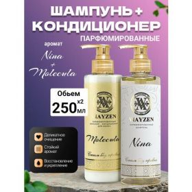 Подарочный Набор Шампунь для волос женский профессиональный парфюмированный для волос с ароматом парфюма Nina и Бальзам-кондиционер для волос Molecula от бренда Viayzen - это комплексный подход для поддержания красоты и здоровья волос. Это уход за волосами, не прибегая к салонным процедурам и не выходя из дома. Благодаря сбалансированному pH подходит как для женщин, так и для мужчин. Это косметическое средство имеет большой объем 250 мл и маленький экономичный расход, поэтому хватит надолго даже при ежедневном использовании. Результат от применения комплекса - это здоровая кожа головы и крепкие, густые и блестящие волосы без перхоти и секущихся ломких кончиков. Нина риччи представляет собой изысканный и яркий аромат. Это сладкий аромат, в котором звучат ноты карамели и пиона, с едва ощутимой свежестью зеленого яблока и яркой кислинкой лайма и лимона. Шампунь и кондиционер подходят для сухих, жирных у корней, поврежденных и нормальных волос. Легко смываются, обеспечивая непревзойденный прикорневой объем и чистоту без утяжеления. В составе большое количество натуральных восстанавливающих компонентов, масел и витаминов. Профессиональный шампунь способствует восстановлению структуры волоса изнутри, уплотняет её и возвращает гладкость и эластичность. Что особенно важно для блондинок, мелированных, осветленных и окрашенных волос. Shampoo женский и мужской препятствует обезвоживанию и ломкости и защищает волосы при термической укладке, обладает антистатическим эффектом. Органические масла и природные ингредиенты делают волосики послушными и шелковистыми. Бальзам ополаскиватель с гиалуроновой кислотой способствует увлажнению, легкому расчесыванию и мягкости. Не важно прямые у вас волосы, кудрявые, вьющиеся. После применения данной косметики для ванны и душа они будут здоровыми по всей длине. Косметика - это желанный подарок для жены или подруги, например, на 8 марта.