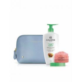 В подарочный набор для тела "Питание и укрепление" от Collistar входит: 1. Замечательное молочко для питательного ухода за кожей тела Collistar Sublime Melting Milk. Ультра-легкая текстура молочка моментально впитывается, делая кожу мягкой и шелковистой. Питает, увлажняет и восстанавливает ее жизненные силы. Экстракт дикого Манго и масло Ши - идеальные союзники для борьбы с сухостью кожи. Они богаты жирными кислотами, фитостеролами и витамином Е, они питают, увлажняют и разглаживают кожу, восстанавливают гидролипидный барьер. Стимулируют регенеративные процессы кожи, предотвращают и восстанавливают повреждения, вызванные свободными радикалами и УФ-излучением. Молочко разработано для очень сухой кожи, и также подходит для любого типа кожи, нуждающейся в увлажняющем и восстанавливающем уходе (например после летнего отдыха на ярком солнце), объём 400 мл; 2. Подтягивающий скраб для тела Сollistar Firming Talasso Scrub, который отшелушивает и выводит токсины, разглаживает и очищает кожу, тонизирует и укрепляет её, поддерживая естественный тонус, питает и увлажняет, делает кожу мягкой и бархатисто-гладкой.