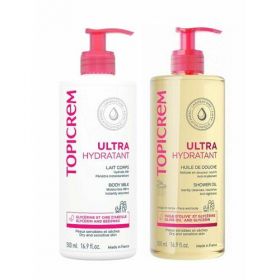 НАЙТИ ВЫГОДНЕЕ - TOPICREM набор Ультра-увлажняющее молочко, 500 мл + Ультра-увлажняющее масло для душа, 500 мл