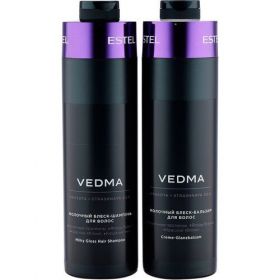Описание: Набор Vedma - это идеальный выбор для тех, кто хочет получить максимальный уход за своими волосами. В состав набора входит блеск-шампунь и блеск-бальзам, которые содержат молочные протеины, ягоды бузины, красное яблоко и кошачью мяту для нежного воздействия на волосы. Шампунь ухаживает за кутикулой и делает полотно волос притягательно гладким, а бальзам придает им блеск и гладкость.