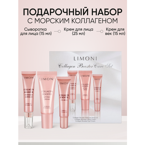 Limoni Подарочный набор для ухода за лицом с коллагеном LIMONI Collagen Booster: Крем для лица 25 мл + сыворотка для лица 15 мл + крем для век 15 мл