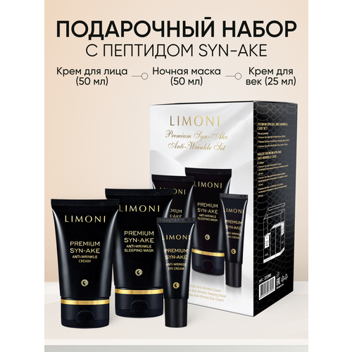 НАЙТИ ВЫГОДНЕЕ - Limoni Набор Подарочный набор для ухода за лицом LIMONI Premium Syn-Ake: Крем для лица 50 мл + Маска ночная 50 мл + крем для век 25 мл
