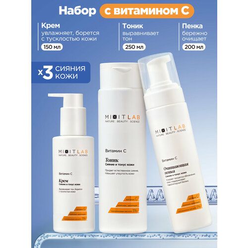 НАЙТИ ВЫГОДНЕЕ - MIXIT Косметический набор для лица: пенка, тоник и крем, с витамином С, для всех типов кожи, 200мл