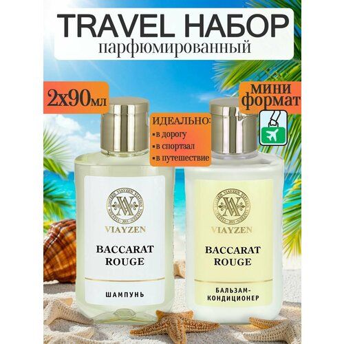 Тревел набор миниатюр косметики с ароматом Baccarat rouge 540 в дорогу от Viayzen включает в себя 2 профессиональных органических средства, созданных для комплексного ухода за волосами: парфюмированный шампунь для волос, парфюмированный бальзам кондиционер для гладкости и ароматизации волос. Набор уходовых средств – идеальный подарок, который сочетает в себе стиль, функциональность и заботу. Компактный мини формат (90 мл каждого) делает его незаменимым в путешествиях и идеальным выбором для дорожной косметички. Шампунь для волос – это SOS-средство, которое мягко очищает и восстанавливает волосы, делая их здоровыми и блестящими. Формула создана для борьбы с секущимися кончиками и ломкостью, обеспечивая ухоженный вид и свежесть локонов. Бальзам-ополаскиватель для волос создан на основе масел арганы и моринги, чтобы обеспечивать увлажнение, питание и восстановление поврежденных волос. Помогает справиться с ломкостью и секущимися кончиками, а также делает волосы гладкими и послушными. Бальзам облегчает расчесывание, подходит для всех типов волос, включая ослабленные и поврежденные.