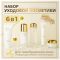 В составе набора: 1. Пенка для умывания, 100 г. Мягкая и очищающая пенка, которая бережно удаляет загрязнения, излишки кожного сала и макияж, не пересушивая кожу. 2. Тоник для лица, 130 мл. Нежное средство для освежения и увлажнения кожи лица, которое помогает подготовить кожу к следующим этапам ухода. 3. Крем для области вокруг глаз, 20 г. Специально разработанный крем, который уменьшает отечность и темные круги вокруг глаз, увлажняет и ухаживает за нежной кожей в этой области. 4. Сыворотка для лица, 30 мл. Интенсивное увлажняющее средство с мощными активными ингредиентами, которые улучшают текстуру и тон кожи. 5. Лосьон для лица, 100 мл. Легкий уход, который дарит коже свежесть и увлажнение, создавая идеальную основу для нанесения макияжа или следующих этапов ухода. 6. Крем для лица, 50 г: Богатый увлажняющий крем, который питает и защищает кожу, помогает восстановить естественный баланс и улучшает упругость.