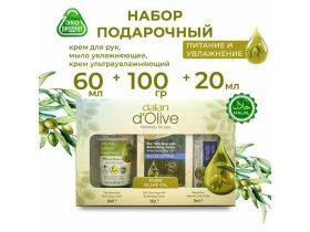 Подарочный набор Dalan D'Olive турецкой косметики 180 гр: турецкий увлажняющий крем для лица, рук и тела 60 мл, мыло для рук 100 гр, интенсивный крем для рук и тела 20 мл 102547298064