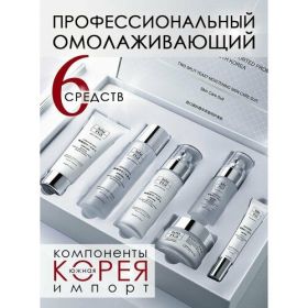 Набор уходовой косметики для лица профессионального аптечного уровня с компонентами, импортированными из Южной Кореи. Шесть косметических средств обеспечат уход полного цикла: очищающее средство гель-пенка, тоник, лосьон, сыворотка, крем для лица, крем для кожи вокруг глаз. Основное действующее вещество косметических средств – экстракт дрожжевых пептидов. Дрожжи активно производят на коже олигопептиды, витамины группы B, минералы и аминокислоты, которые делают кожу упругой и эластичной, мягко осветляются пигментные пятна. Гиалоурановая кислота и натуральные экстракты в составе набора активно насыщают кожу влагой, смягчают, разглаживают, делают её «живой». Никотинамид обеспечит мощный подтягивающий лифтинг-эффект. Регулярное использование набора поможет справиться с проявлением возрастных изменений, предотвратить появление новых морщин и заметно разгладить уже имеющиеся. Косметические продукты этой серии обладают легкой консистенцией, поэтому после нанесения не оставляет ощущение дискомфортной липкости. Они интенсивно впитываются кожным покровом и щедро насыщают его живительной влагой. Продукты активизируют протекание процессов метаболизма, что способствует ускоренной реновации клеток и синтезу белков соединительной ткани. Они обладают превосходными освежающими, успокаивающими и укрепляющими свойствами, даря коже роскошное сияние изнутри и замедляя процессы старения.