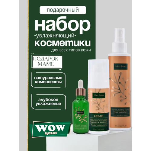 НАЙТИ ВЫГОДНЕЕ - Набор уходовой косметики Teorema для всех типов кожи Увлажнение сыворотка с пептидами + тоник + пенка, 3 предмета