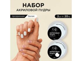 Акриловая пудра для ногтей. Набор прозрачная и белая (20гр) 103741860839