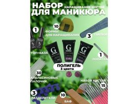 Набор для маникюра и педикюра. Для наращивание ногтей с Полигелем трех цветов, плюс Топ и База Kodi - 77 предметов 103792004204