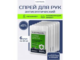Спрей антисептик для рук Flextravel, без спирта, объем 20 мл, 6 шт в комплекте 4399197255
