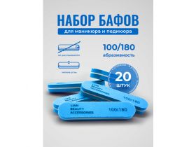 Набор бафов 100/180 для маникюра 20шт, бафы для полировки и шлифовки ногтей, синий Lian Beauty Accessories 101795587053