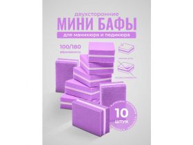 Мини бафики 100/180 для маникюра 10 шт, для полировки и шлифовки ногтей фиолетовый Lian Beauty Accessories 101552513578