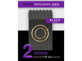 Nail Club professional Типсы для дизайна ногтей и создания палитры, форма миндаль, цвет черный, 50 шт. +2 золотых кольца. 101799579291