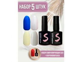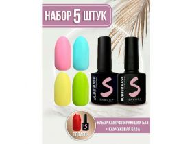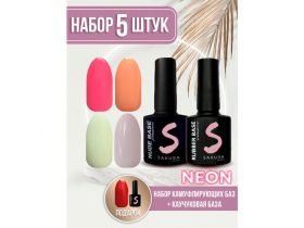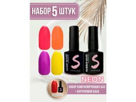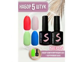 Набор камуфлирующих баз для ногтей Sakura, неоновые, каучуковые, 5 шт по 8 мл 102922174227